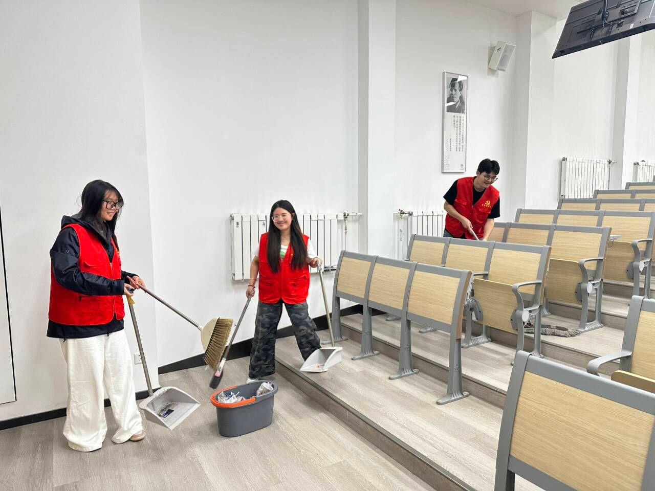 活动中,全体党员在支部书记杨亚兴老师的带领下,锚定“党建领航聚合力,劳动筑魂育新人”目标,对国际商学院教学楼五六层9间教室进行了全方位环境提升行动。各党小组以“党建+劳动”为纽带,既分工明确又协同联动。党员们分工明确、干劲十足:有的专注擦讲桌与课桌椅,让教学设施焕发光彩;有的认真清理墙角、桌下等卫生死角,不放过一丝杂物;有的对抽斗进行了清理……劳动过程中,大家相互协作、热情高涨,以行动真实诠释“劳动创造价值”的深刻内涵。